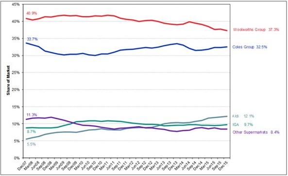 King, M. (2016, Apr. 15). ALDI is stealing market share from Woolworths Limited. The Motley Fool. Retrieved from http://www.fool.com.au/2016/04/15/aldi-is-stealing-market-share-from-woolworths-limited/